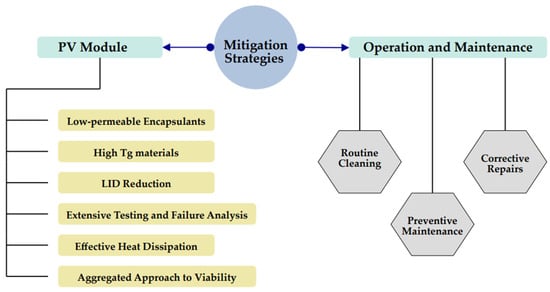 With the increase of photovoltaic (PV) penetration in the power grid, the reliability and longevity of PV modules are important for improving their payback period and reducing recycling needs. Although the performance of PV systems has been optimized to achieve a multi-fold increase in their electricity generation compared to ten years ago, improvements in lifespan have received less attention. Appropriate operation and maintenance measures are required to mitigate their aging. PV cells and modules are subject to various degradation mechanisms, which impact their long-term performance and reliability. Understanding these degradation processes is crucial for improving the lifetime and sustainability of solar energy systems. In this context, this review summarizes the current knowledge on key degradation mechanisms (intrinsic, extrinsic, and specific) affecting PV modules, as well as on-site and remote sensing methods for detecting PV module defects and the mitigation strategies employed for enhancing their operational lifetime under different climatic conditions in the global environment.