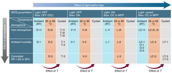 Intrinsic degradation [] is related to processes that can occur even in the absence of light in the internal of the module. These internal factors include processing effects, module architectural and manufacturing techniques, and PV component compatibility. Intrinsic degradation can be addressed by selecting materials with glass transition temperatures above 100 °C to improve stability at functioning temperatures.