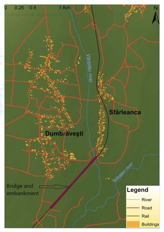 The river flow direction (from north to south), the relatively small opening of the bridge, the embankment direction (from southwest to northeast), and the location of the starting point of the embankment further south compared to the bridge over Vărbilău favor water accumulation and floods when the Vărbilău’s flow is extremely high [30].