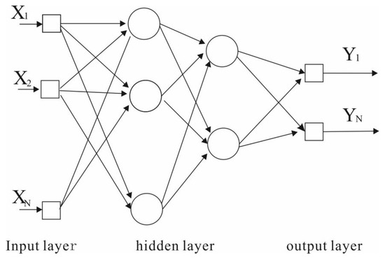 A BP (Backpropagation) neural network consists of an input layer, an output layer, and one or more hidden layers [38], as shown in Figure 6. During implementation, initial data normalization is performed to control the scale of each feature within the same range. Then, the network model and structure are established. Next, training samples are selected as needed, and the network is trained by incorporating the input and expected output data. Through forward propagation and backpropagation processes, weight and threshold adjustments are made, and output errors are calculated until the learning error requirements are met, achieving function approximation [39]. After training, the model is evaluated using actual data to make the final result determination.