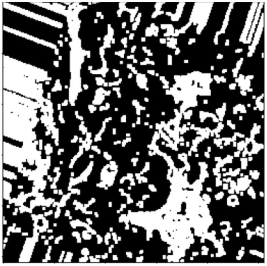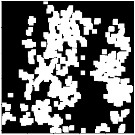 This method isolates nuclei objects on (normalized H) image and, finds the sure foreground by removing the remaining uninterested ROIs. After the distance transformation step, further thresholding is done to highlight and emphasize the sure foreground objects and sure background on the BC (normalized H) histology image. Figure 7 and Figure 8 show image results from distance transformation and thresholding respectively.