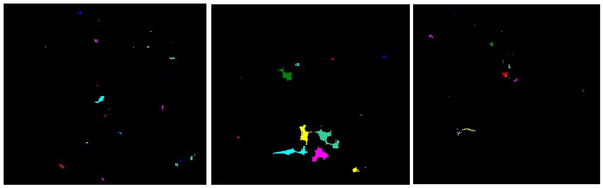 Once all pixel groups have been determined and labeled according to their assigned components, the watershed filling is used to segment and maintain nuclei objects and their edges by color-coding(mask) to distinguish the different regions namely; background, foreground, and edge boundaries. Finally, we have an RGB image with color-coded labels painted over the image. Figure 10 shows image results of the proposed watershed segmentation method.