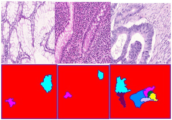 Figure 11 illustrates visual examples of images before and after the application of our proposed segmentation method. These image results demonstrate the effectiveness of the proposed method on other human glands histology images gathered from the publicly available Warwick QU Dataset in the Kaggle dataset repository. Therefore, this proposed method is efficient in segmenting and maintaining nuclei objects and their edges on histology images, with this clearly illustrated from the various image results of other human glands namely; kidney and colon H&E images among others provided in the publicly available Warwick dataset. Breast cancerous lesions are detected via their spread on tissues signifying nuclei objects irregularity on histology images. The H&E stain separation and normalization technique aids the dividing of image pixels into hematoxylin (blue color) denoting nuclei features, whereas eosin (pink color) denotes tissue structures. Therefore, any other breast lesion on either lobules or ducts will be detected by separating nuclei objects from non-nuclei objects in histology images, thus the applicability of the proposed approach.