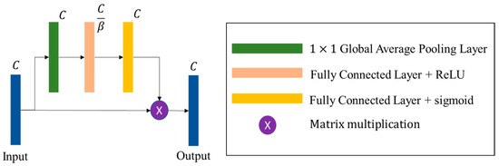 Figure 4. Its operations are described as follows. Firstly, global average pooling is applied to compress the spatial dimensions of the feature map into a channel descriptor. Secondly, two fully connected (FC) layers are used to capture channel dependencies. The first FC layer, with
