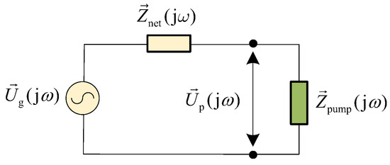 The equivalent impedance model of the grid-connected FSC-VSPSU is shown in Figure 6. denote the equivalent grid power supply voltage; denote the FSC-VSPSU port voltage; represents the grid network impedance; and represents the FSC-VSPSU impedance. Thus, can be expressed in (4).