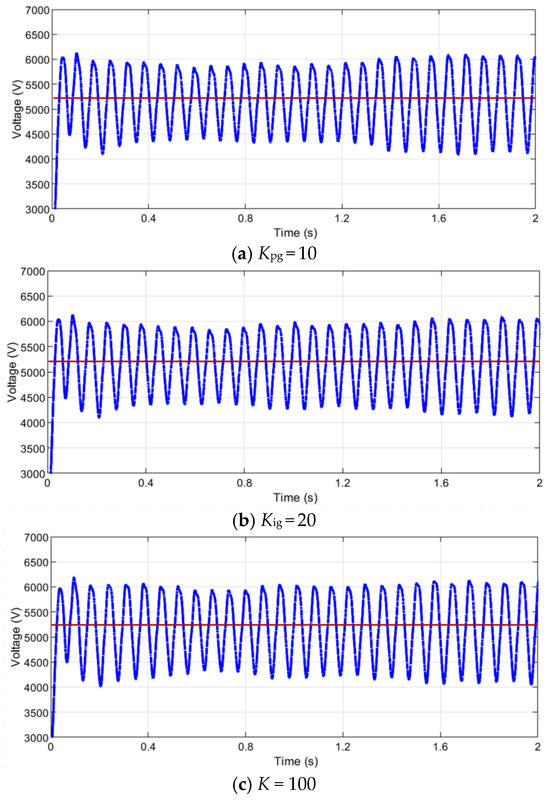 Furthermore, when Kiv is decreased to 20, the oscillation is completely suppressed, as shown in Figure 18b, to maintain the system’s stability. Similarly, when Kic1 is decreased to 25, the oscillation also disappears, which indicates that reducing the relevant parameters can suppress the oscillation. Thus, “↓” being used to label them in Table 1 is verified.