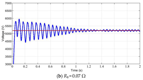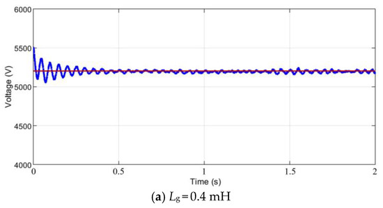Figure 21 gives the simulation results when changing the equivalent impedance parameters of the grid network. As it can be seen, when decreasing Lg, or increasing Rg, the oscillations can be suppressed, and the system ultimately returns to a stable operating state. Therefore, “↓” being used to label Lg and “↑” being used to label Rg in Table 1 are verified.