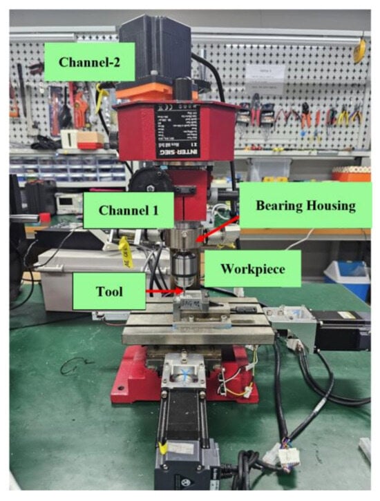 In modern manufacturing, ensuring the reliability and precision of milling machines is vital due to their wide use in various industries [1]. Milling machines play a key role in transforming raw metal workpieces into finished products by performing complex operations [2,3]. These operations, characterized by high speeds and heavy loads, make milling machines susceptible to unexpected faults, particularly in main components such as cutting tools, gears, and bearings. Among the various faults encountered, mechanical failure accounts for 57% of all issues, with bearing failures representing 42% of these cases. Furthermore, faults in gears and bearings can disrupt the functionality of the spindle system, leading to downtime and financial losses. For instance, cutting tool failures contribute to approximately 20% of unexpected downtime, significantly impacting operational efficiency [4]. Mechanical component failures in milling machines not only increase maintenance costs but also lead to longer downtime, injuries, fatalities, and reduced cutting speeds [5]. As such, addressing these faults promptly is essential for maintaining operational efficiency and minimizing financial impacts. This study focuses on developing an intelligent fault diagnosis technique to detect and identify mechanical component failures in milling machines, specifically targeting gears, bearings, and cutting tools.