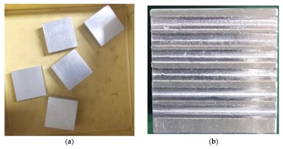 Samples used in the study: (a) unprocessed workpieces and (b) workpieces after the milling process.