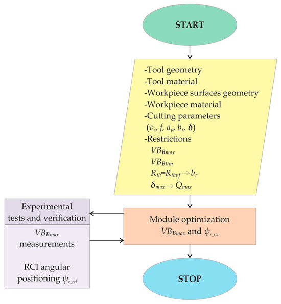 In order to be able to carry out angular positioning of the RCI of the torus milling cutter, a procedure for the proposed solution was developed, as shown in Figure 11. This procedure takes into account the basic restriction of tool wear and is dedicated to the multi-axis milling process.