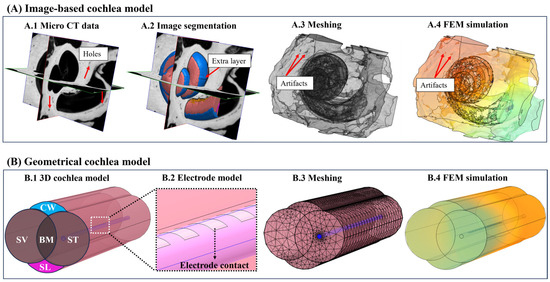 - Wong, P.; George, S.; Tran, P.; Sue, A.; Carter, P.; Li, Q. Development and validation of a high-fidelity finite-element model of monopolar stimulation in the implanted Guinea pig cochlea. IEEE Trans. Biomed. Eng. 2016, 63, 188–198. [Google Scholar] [CrossRef] [PubMed]