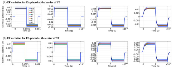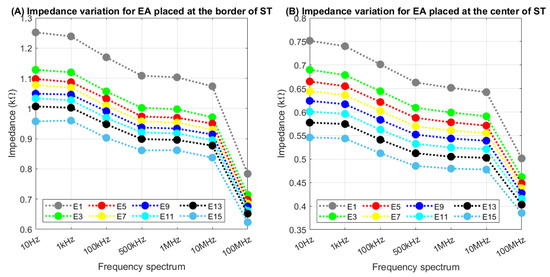 - Impedance variation based on the EAs that are placed at the center and border of the ST by considering both capacitive and static (resistive) effects;