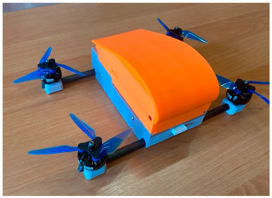 A quadcopter, an unmanned aerial vehicle powered by four propellers, is an example of innovative UAV technology. Its basic structure consists of a lightweight but durable frame that integrates key components: four electric motors with propellers, positioned at the ends of arms extending from a central point; an avionic system; and a rechargeable battery. These independently controlled propellers provide an exceptional vertical take-off and landing (VTOL) capability and stability and maneuverability in the air. The construction of the quadcopter is depicted in Figure 1.