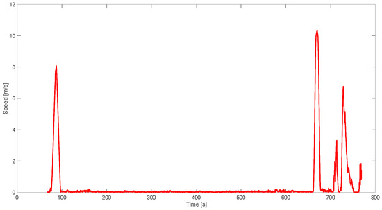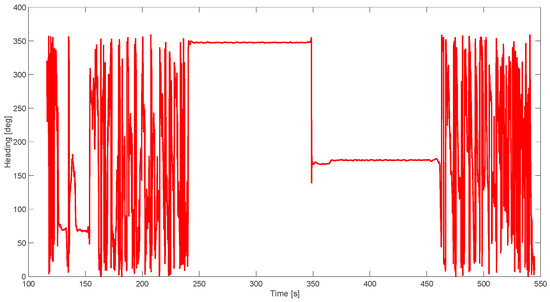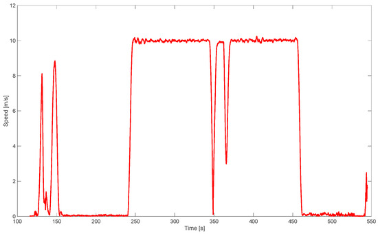Figure 10 presents the speed of the UAV. The desired speed was equal to 10 m/s. The altitude and heading are presented in Figure 11 and Figure 12.
