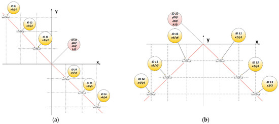 Formations of unmanned aerial vehicles (UAVs) can have various constellations. The simplest constellation involves replicating the shape of a geometric figure such as a line, rectangle, triangle, or hexagon (Figure 13). Each unmanned aerial vehicle has an identifier (ID) that determines the position of the aircraft in the formation (Figure 13).