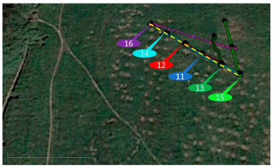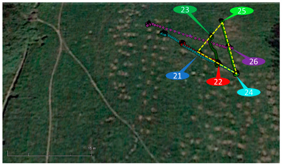 The linear and triangular formations are shown in Figure 28. Here, all UAVs hold stable positions. Figure 16 and Figure 17 present the positions recorded from an on-board GPS for linear and triangle formations.