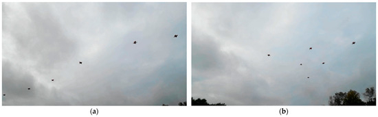 The organization and control of UAV formations are areas of interest for scientific communities. Countries striving to catch up in the technological race in the field of manned aircraft and large UAVs show significant activity in this area. Research focused on the use of small and simple UAVs aims to increase system efficiency through group and swarm operations. A considerable portion of the research revolves around the use of UAVs in formation. Studies have focused on controlling the formations of aircraft [1,2,3,4], and multirotor flying platforms [5,6,7]. The specific nature of formation flight addresses issues such as flight trajectory planning and optimization [3,8], collision avoidance [9,10] and cooperation between the UAVs [11,12,13,14], and the organization and maintenance of formations [15,16]. Since maintaining coherence during formation flight is essential, many studies have aimed to develop complex formation control systems [8,17,18,19,20,21].