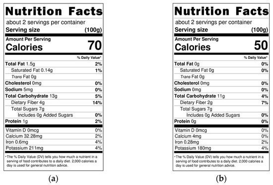Proposition of food labels for smoothies: (a) fresh smoothie with chia seeds, (b) fresh smoothie without chia seeds.