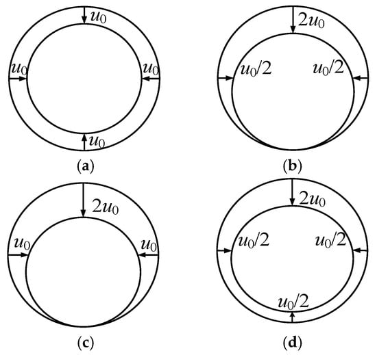Park [43] proposed four models for soil movement around tunnels to calculate stratum deformation in shallow buried tunnels, as illustrated in Figure 2. Among these, both B.C-3 and B.C-4 consider tunnel ovalization deformation.