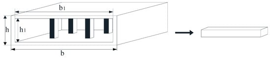 Regarding stiffness equivalence of existing structures, the structure is often assumed to be a rectangular beam for calculation, as shown in Figure 5. Equating them to a rectangular beam using Equation (14) gives the following: