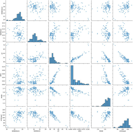 A correlation heatmap and scatter plots were generated (Figure 1 and Figure 2) to visually depict the relationships between UCS and the input variables, facilitating a preliminary understanding of the dataset’s characteristics.