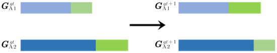 where and represent two different individuals, and are the individuals of the th generation, and are the individuals of the th generation, and is a random number within the range . To ensure that the crossover individuals do not exceed the specified range, a bounding judgment is added. Figure 3 displays the arithmetic crossover.