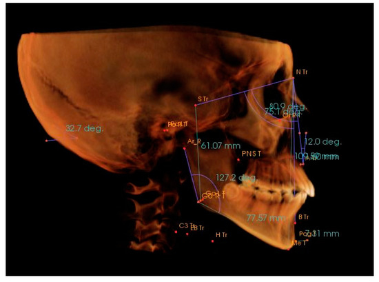 In contrast to other studies that employed 2D cephalometric analysis, our study used a 3D analysis system derived from CBCT volumetric images. This involved establishing a set of landmarks, reference lines, and reference planes to conduct comprehensive 3D assessments. Serafin et al. conducted a study indicating that deep learning algorithms demonstrated exceptional accuracy in automatically identifying 3D cephalometric landmarks [1]. The landmark identifications and physical measurements were performed by the same orthodontist (V.T.T.T). For the 3D cephalometric analysis, we identified 16 hard tissue landmarks and performed seven anteroposterior and five vertical measurements. These are defined in Table 1 and illustrated in Figure 2.
