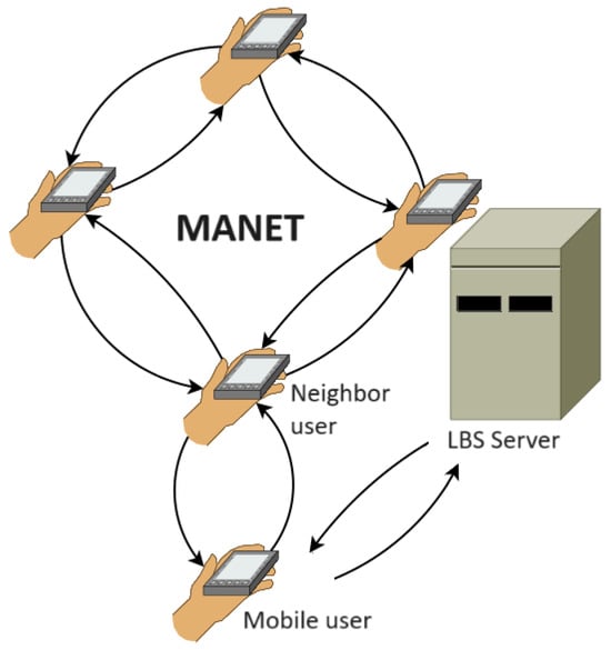 LBS server: This server is located on the Internet and provides location-based information. It is considered the highest level of consultation that a user only wants to access as a last resort when it does not find a response from its neighbors. The LBS server provides reliable information but can compromise its users’ location and query privacy.