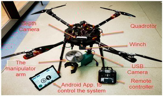 The system’s control is achieved through two Raspberry Pi companion computers, accessible via an Android app. The first Raspberry Pi is securely mounted on the arm and serves to govern the operation of the saw, linear actuator, and end effector. Meanwhile, the second Raspberry Pi is affixed to the quadrotor and handles tasks such as winch control and video stream capture from the depth camera. Each Raspberry Pi is capable of capturing video streams from two cameras, including depth and USB cameras. This dual Raspberry Pi setup enhances the system’s versatility and control capabilities.