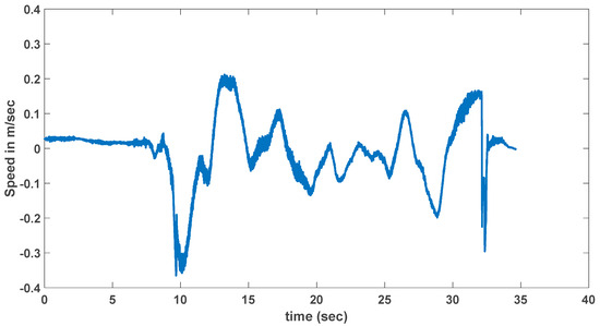 The performance of the quadrotor during the cutting process is assessed through data extracted from the log files stored in the Pixhawk flight controller. The attitude and altitude angles, as shown in Figure 12, Figure 13, Figure 14 and Figure 15, reveal only minimal variations throughout the operation. These minor deviations demonstrate that the system is able to maintain a stable orientation, which is crucial for ensuring precise control during the cutting process. The stability of the quadrotor is further confirmed by the velocity data, which fluctuates around zero with minimal magnitude. This indicates that the quadrotor experiences only slight oscillations, highlighting its ability to maintain steady flight despite the complexities of the task.