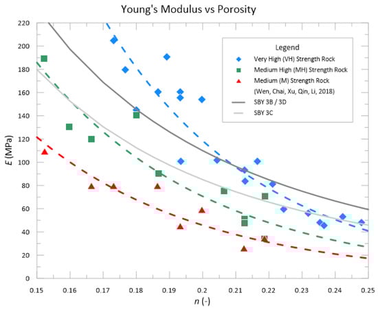 Young’s modulus as a function of porosity for SBY CFRD [8].