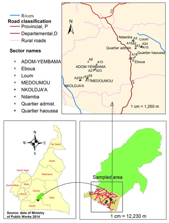- MINTP, Data of Ministry of Publics Works Cameroon. 2024. Available online: http://sig.mintp.cm/ (accessed on 25 July 2024).