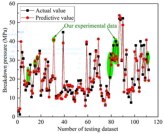 Notably, Figure 11 shows the model’s predicted breakdown pressure for the fracturing experiments, with an average relative error of approximately 16% between the predicted and experimental values. This highlights the model’s accuracy in predicting breakdown pressure and its potential as an effective tool for optimizing fracturing operation parameters.