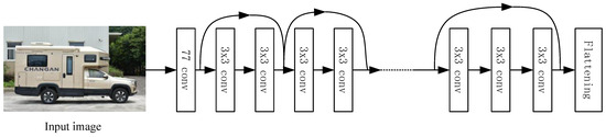 The structure of the image feature extractor is shown in Figure 2. We adjust the traditional pre-training model by deleting the pooling and fully connected layers because these layers are only used for classification, unsuitable for retaining local features, and do not contain parameters. The introduction of residual blocks prevents the loss of optimal local features from generating noise, and the residual fast design improves the feature quality of the samples to provide better feature representation for the SMOTE interpolation module later. Since SMOTE interpolation is performed in one-dimensional data, the last layer of the model is designed as a spreading layer, which spreads the received multi-dimensional output of the previous layer into one dimension for interpolation calculation.