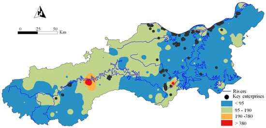 Furthermore, establishing and refining a heavy metal pollution monitoring network across the city is vital for the regular assessment of heavy metal concentrations in soil, water, and air. Special attention should be directed towards the two red zones identified as having very strong ecological risk (Figure 5). Conducting environmental risk assessments in these areas will facilitate the timely identification of heavy metal pollution issues and provide early warning systems to mitigate potential impacts.