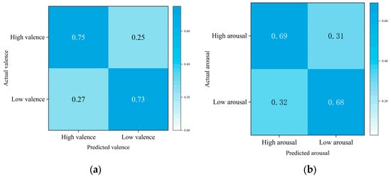 Figure 3 illustrates how this theory categorizes emotions. The arousal and valence of an emotion can be classified into four categories. Thus, emotion-recognition tasks can be divided into two binary classification tasks.