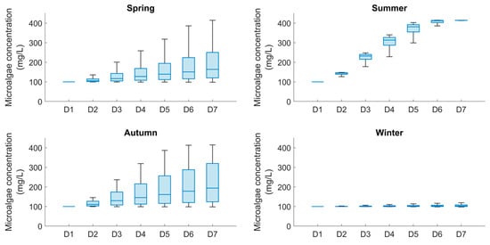 - Díez-Montero, R.; Belohlav, V.; Ortiz, A.; Uggetti, E.; García-Galán, M.J.; García, J. Evaluation of Daily and Seasonal Variations in a Semi-Closed Photobioreactor for Microalgae-Based Bioremediation of Agricultural Runoff at Full-Scale. Algal Res. 2020, 47, 101859. [Google Scholar] [CrossRef]