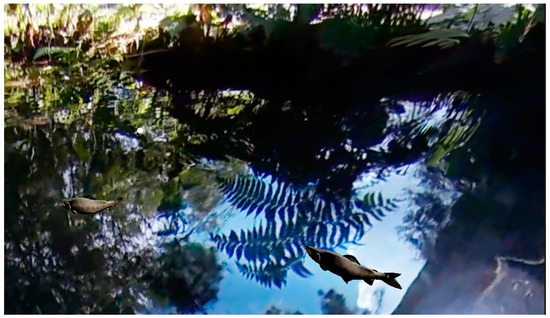 This study combined the indigenous culture of the Atayal Tribe with the learning topic of “aquatic ecology” in the elementary school curriculum. The integration enables students to gain a better understanding of ecological environments and acquire the Atayal wisdom of protecting and sustainably utilizing natural resources. The elements selected in this study focused on investigating the ecological environments of Chichiawan Creek and the Atayal Nanshan Tribe in northern Taiwan. Observation points and learning content were selected based on the habitats of the Taiwan Masu Salmon and the residential areas of the Atayal Tribe. Figure 1 shows the planned observation points for developing the VR360 ecological system, including the Atayal Cultural Center, Taiwan Masu Salmon habitats, the Chichawan Archaeological Site, Taoshan Waterfall, Rahaw Creak, and the Taiwan Masu Salmon Ecology Center. This study utilized the Satellite View on Google Maps to facilitate the visualization of these ecological observation points. The researchers also planned several aquatic animals commonly seen in the Chichiawan Creek area (Figure 2).