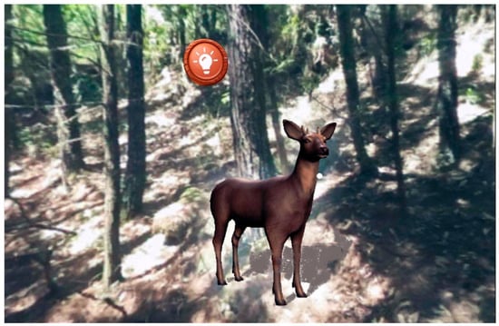 When developing the VR360 ecological system, this study utilized Unity3D to create the virtual scenes of observation points in the Atayal Nanshan Tribe and Chichiawan Creek ecological areas. The 3D models of endangered species, like Taiwan Masu Salmon (Figure 6) and Formosan Reeve’s Muntjac (Figure 7), were incorporated into the virtual scenes. The integration of endangered species into the VR360 ecological system allows learners to observe and interact with these animals to better understand their behaviors and habitats. The combination of virtual and tangible elements creates a more immersive and natural experience, delivering a vivid encounter with wild animals. This approach provides an interactive experience, enabling learners to understand the importance of protecting endangered species and their ecological environments. Additionally, it helps promote the concept of ecological conservation by showing the delicate balance of an ecosystem and the crucial role each species plays within it. Unlike the virtual scenes created by 3D geometric modeling, VR360 technology replicates panoramic pictures of natural landscapes, more suitable for environmental education.