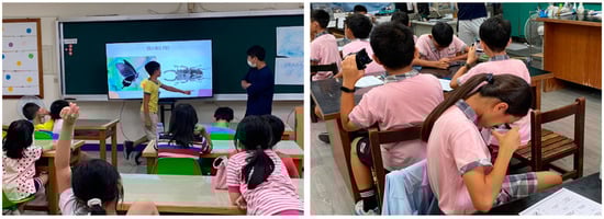 The instructional design of learning units aims to enhance students’ understanding of the distinct features of aquatic creatures and their living environments. Students are encouraged to observe the behaviors of various aquatic animals, enhancing a deeper understanding of their ecological features. This approach can foster students’ awareness about the ecology of aquatic creatures while encouraging a commitment to environmental conservation. Through the learning process, students can gain deeper insights into the roles and significance of aquatic ecology to develop an appreciation for biodiversity. The learning content of the VR360 ecological system includes “Atayal Culture”, “Natural Ecology”, and “Environment and History”, aligning seamlessly with the relevant learning units of the natural science curricula in elementary schools (see Table 1).