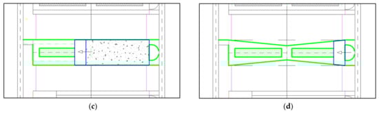 Schematic diagram of the extraction methods for the step one stope. (a) Extraction from one side of the stope to the other; (b) extraction from both sides to the middle; (c) extraction and filling in the stepwise extraction plan; and (d) extraction plan with reduced dimensions in the middle of the stope.