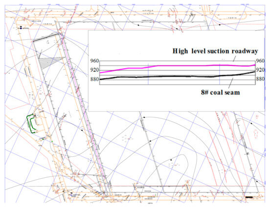 Cross-section map of high-level suction drainage roadway. (Magenta line is high level suction roadway, and black line is coal seam).