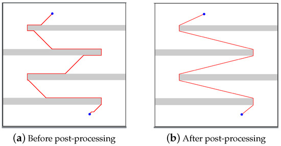 Post-processing increases the degree of freedom the robot has without being restricted by the discretization of space. In addition, the number of times the robot rotates is decreased.