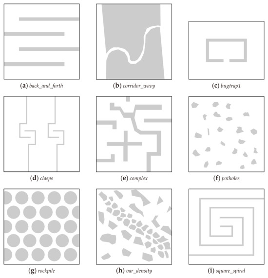 Each of the instances back_and_forth and clasps have four obstacles. In these cases, all the obstacles are critical; hence, the difference between their results in the critical and non-critical instances is not significant. In these cases, the differences are more related to the map’s structure. Despite this, it is possible to notice an improvement in the results as the percentage of known obstacles increases.