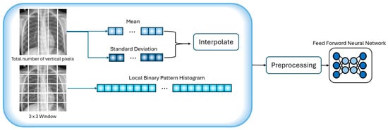 Choosing standard deviation came from the fact that it adds information about intensity distribution and variability. In pneumonia, the affected lung regions usually have a more diverse patch appearance with varying intensity, unlike healthy lungs with homogeneous intensity patterns. Accordingly, the higher standard deviation indicates a more significant variation, which can be interpreted as pneumonia. The mean and standard deviation of the pixel intensities can provide meaningful texture descriptions, such as homogeneity, contrast, and smoothness. These can capture the small patterns and changes between viral pneumonia, bacterial pneumonia, and normal lungs and help quantify the changes among them, which is essential for efficient training of the DL model.