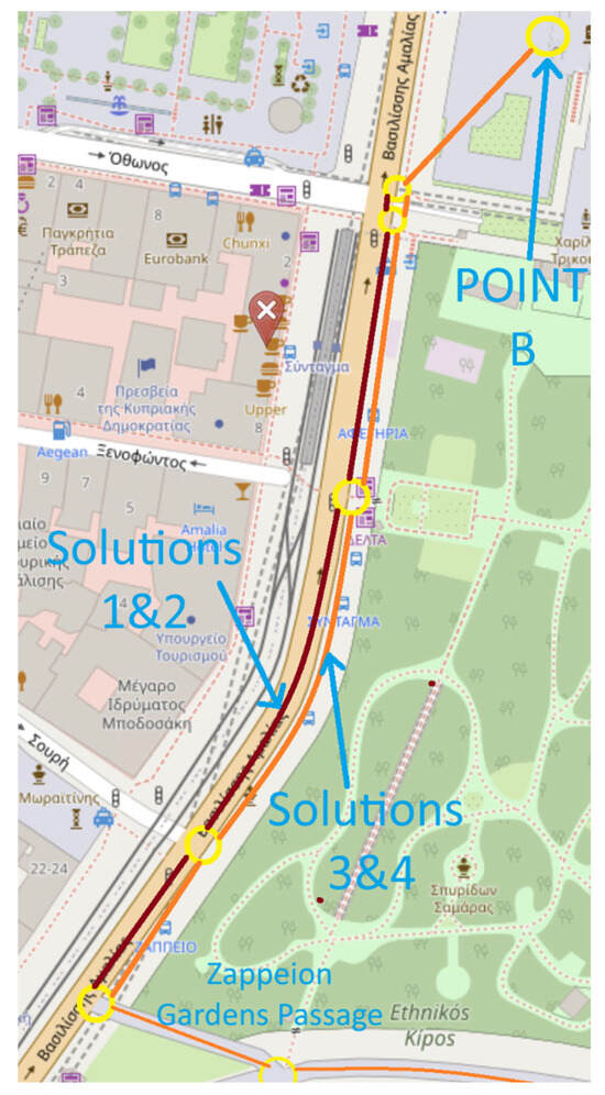 - Access to destinations: In some cases, contraflow roads may provide more direct access to destinations for cyclists [29]. By choosing to move in the opposite direction of vehicles, the time and distance needed to reach destinations close to their original location can be reduced.