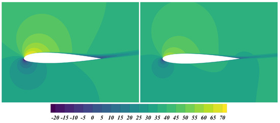 In the visualization of boundary pressure, we adopted the pressure coefficient approach to compare the baseline model with the results obtained from GeoANF and CFD solutions. The pressure coefficient at the surface of the airfoil is defined as a dimensionless coefficient as follows:
