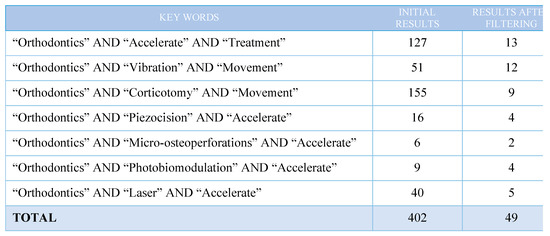 Chicago/Turabian StyleCastillo-Montaño, Laura, Pedro Colino-Gallardo, Hugo Baptista-Sanchez, Isabel Drewling, Mario Alvarado-Lorenzo, Laura Antonio-Zancajo, and Carlos Colino-Paniagua. 2024. "Efficacy of Invasive and Non-Invasive Methods in Orthodontic Tooth Movement Acceleration: A Systematic Review" Applied Sciences 14, no. 22: 10700. https://doi.org/10.3390/app142210700