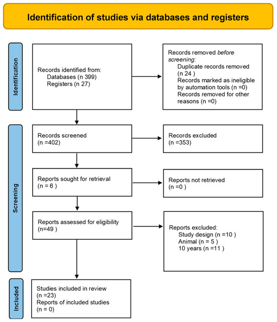 APA StyleCastillo-Montaño, L., Colino-Gallardo, P., Baptista-Sanchez, H., Drewling, I., Alvarado-Lorenzo, M., Antonio-Zancajo, L., & Colino-Paniagua, C. (2024). Efficacy of Invasive and Non-Invasive Methods in Orthodontic Tooth Movement Acceleration: A Systematic Review. Applied Sciences, 14(22), 10700. https://doi.org/10.3390/app142210700