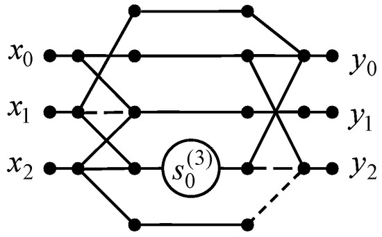 Based on the properties of structural matrices [5,32] and denoted , the computational procedure for the six-point DHT-II is represented by the expression